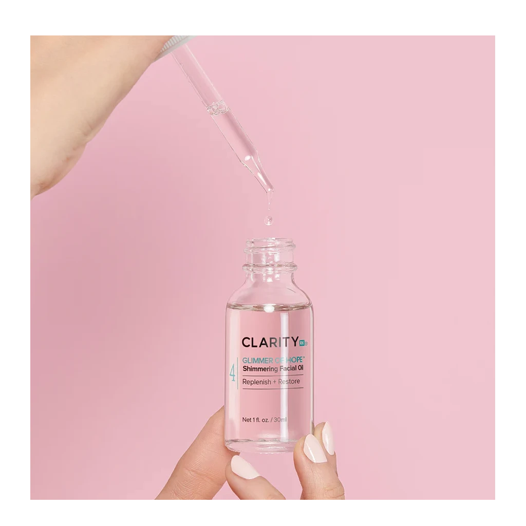 Glimmer Of Hope™ Shimmering Facial Oil is a restorative blend of oils that help to nourish and deeply condition the skin. This advanced formula contains organic oils from around the world. Some of these luxurious oils include Fractionated Coconut, Turkish Rose, Squalane, Jojoba, Sunflower, Meadowfoam, Marula, and Borage Oils. These botanical oil blends work to keep skin looking smooth and supple, with a healthy, naturally-radiant glow. It protects, renews skin tone and texture, and promotes a more luminous, youthful appearance by addressing concerns like dullness, sun damage, and dryness.