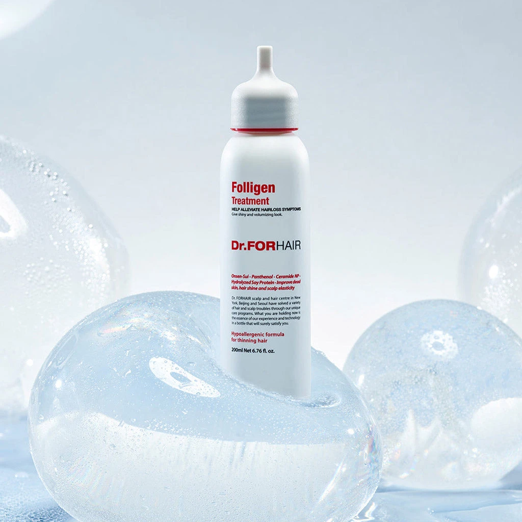 A Solution for dryness, frizz, damaged/split ends/breakage, and dry/oil/sensitive scalp. Dr.FORHAIR’s daily treatment hydrates and alleviates hair loss while volumizing dry, lifeless hair with our Folligen Complex and thermal spring water from Karlovy Vary, Czech Republic region. A treatment the whole family can use, this formula strengthens hair and scalp while moisturizing, volumizing, and restoring shine to hair. Free of silicone, parabens (Lead, nickel, arsenic, mercury, antimony, cadmium, dioxane, methanol,