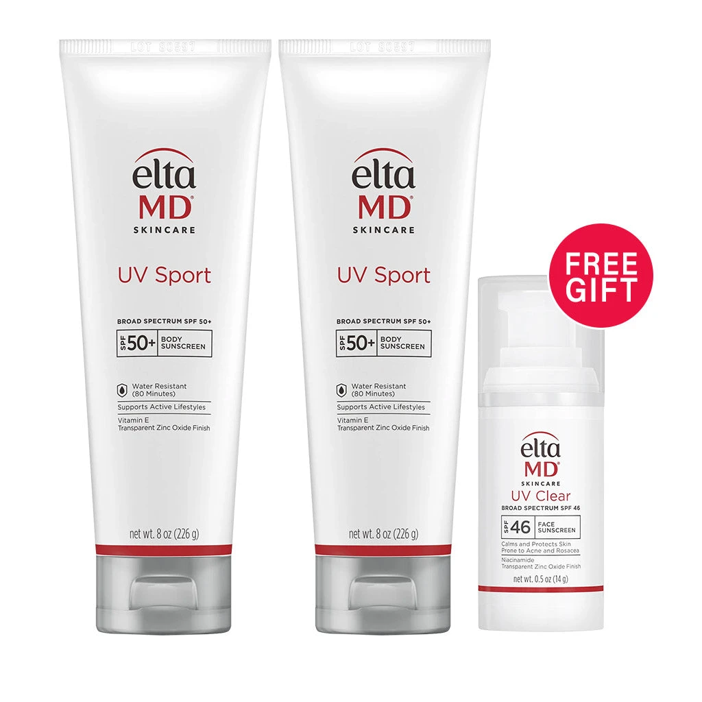 EltaMD Buy 2 Full Size EltaMD UV Sport Broad-Spectrum SPF 50 (8oz) Get 1 FREE UV Clear Broad-Spectrum SPF 46 Trial Size