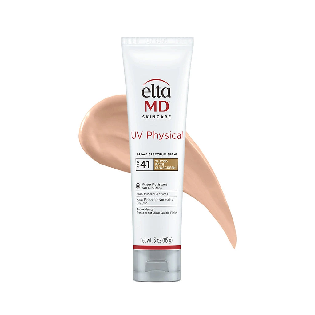 EltaMD UV Physical Broad-Spectrum SPF 41 is a chemical-free (no added chemical sunscreen filters) sunscreen that uses the natural mineral protection of 9% transparent Zinc Oxide and Titanium Dioxide. The gentle, natural sunscreen can be used with all skin types, however, is especially ideal for those with extra-sensitive and post-procedure skin for a healthy choice for sun protection. UV Physical is a lightly tinted and oil-free formula that effectively protects the skin against UVA and UVB sun rays. UV Physical is also rich in antioxidants that will help to neutralize harmful free radials in the environment and further protect the skin surface from any sun damage. The gentle sunscreen is also water-resistant (40 minutes) and will withstand water exposure, perspiration and humidity. It comes fragrance-free, oil-free, sensitivity-free, chemical-free, paraben-free and non-comedogenic.