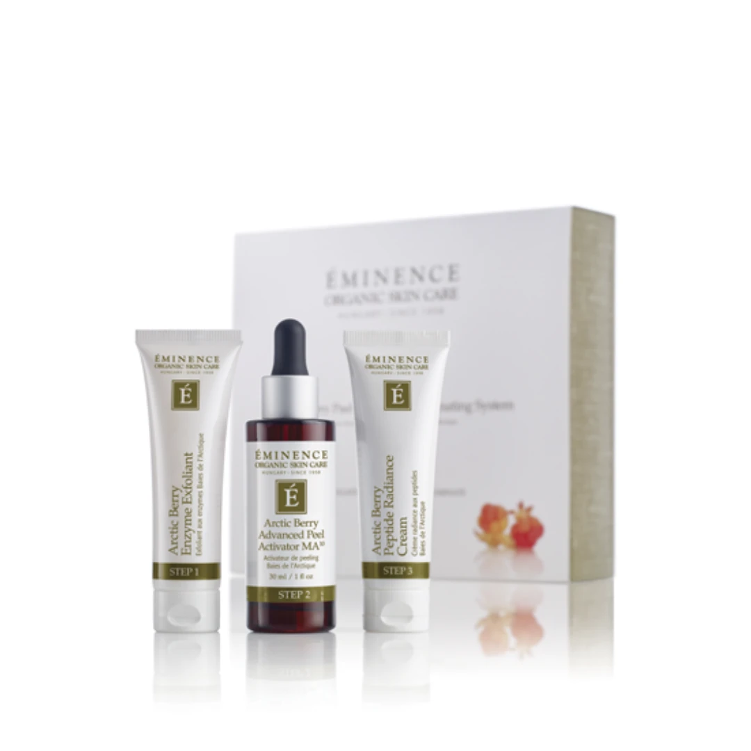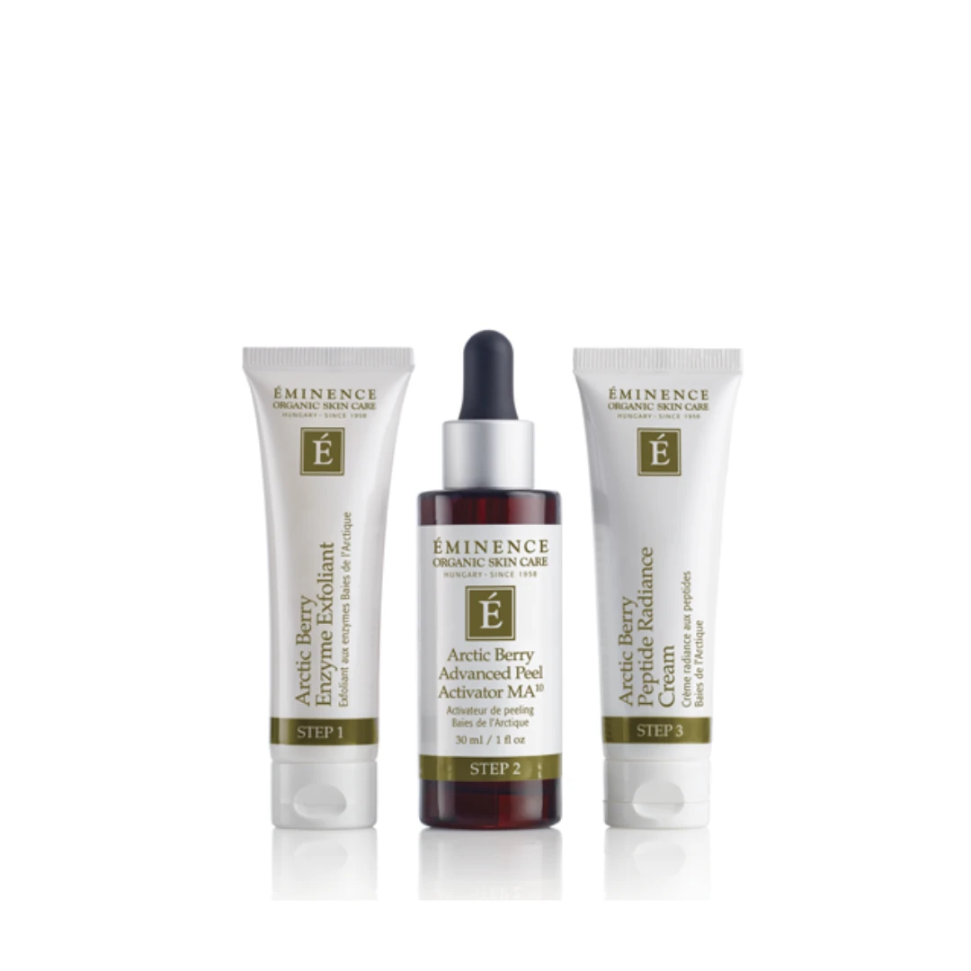 Keep your skin radiant in-between spa treatments with this innovative three-step peel and peptide system, known as the Eminence Arctic Berry Peel & Peptide Illuminating System, which awakens the skin’s natural inner beauty using an exquisite blend of arctic berries, lingonberry seed oil, and hibiscus seed extract.