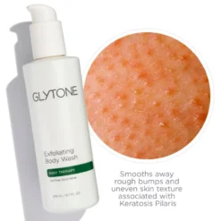 Daily body wash helps erase rough bumps and uneven skin texture to reveal smoother, glowing skin. Leveraging 8.8% Free Acid Value Glycolic Acid to deeply cleanse, exfoliate dull, dead skin cells and resurface skin.