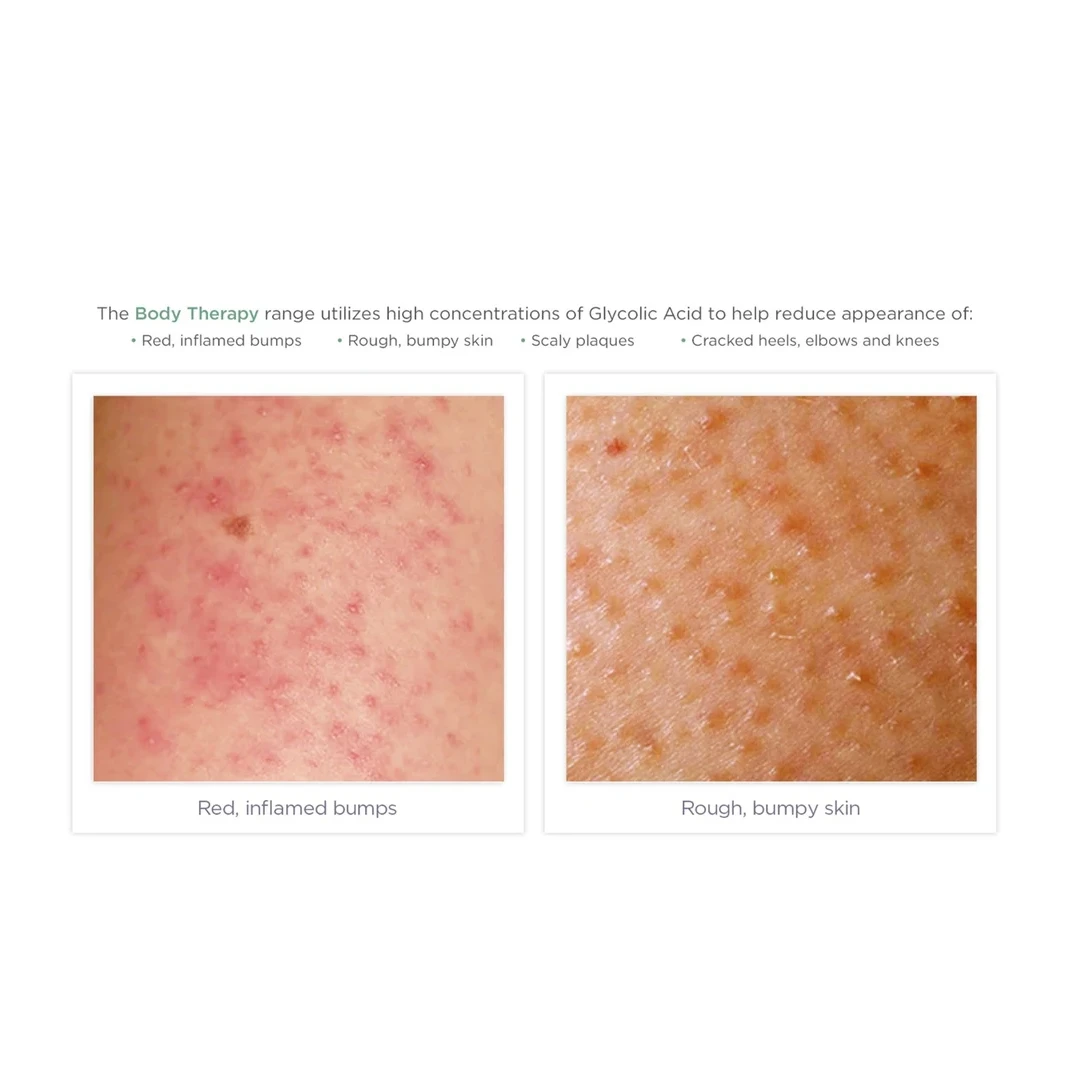 Daily body routine helps erase rough bumps and uneven skin texture by leveraging Free Acid Value Glycolic Acid. This 2-step kit includes Exfoliating Body Wash, Exfoliating Body Lotion and a bath pouf to reveal softer, smoother and radiant skin.