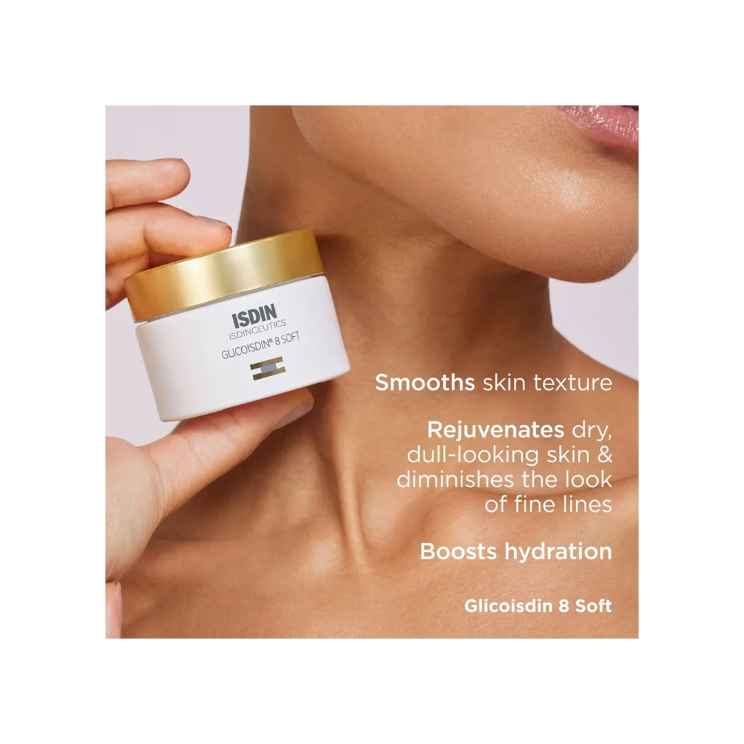 A renewing facial cream designed to help refine skin texture and smooth the appearance of fine lines. Its light-texture formula contains 3.2% free glycolic acid to actively exfoliate and encourage skin turnover. Created with borage oil to enhance skin’s elasticity and moisture. Enjoy your most luminous complexion yet with Glicoisdin® Soft Cream.