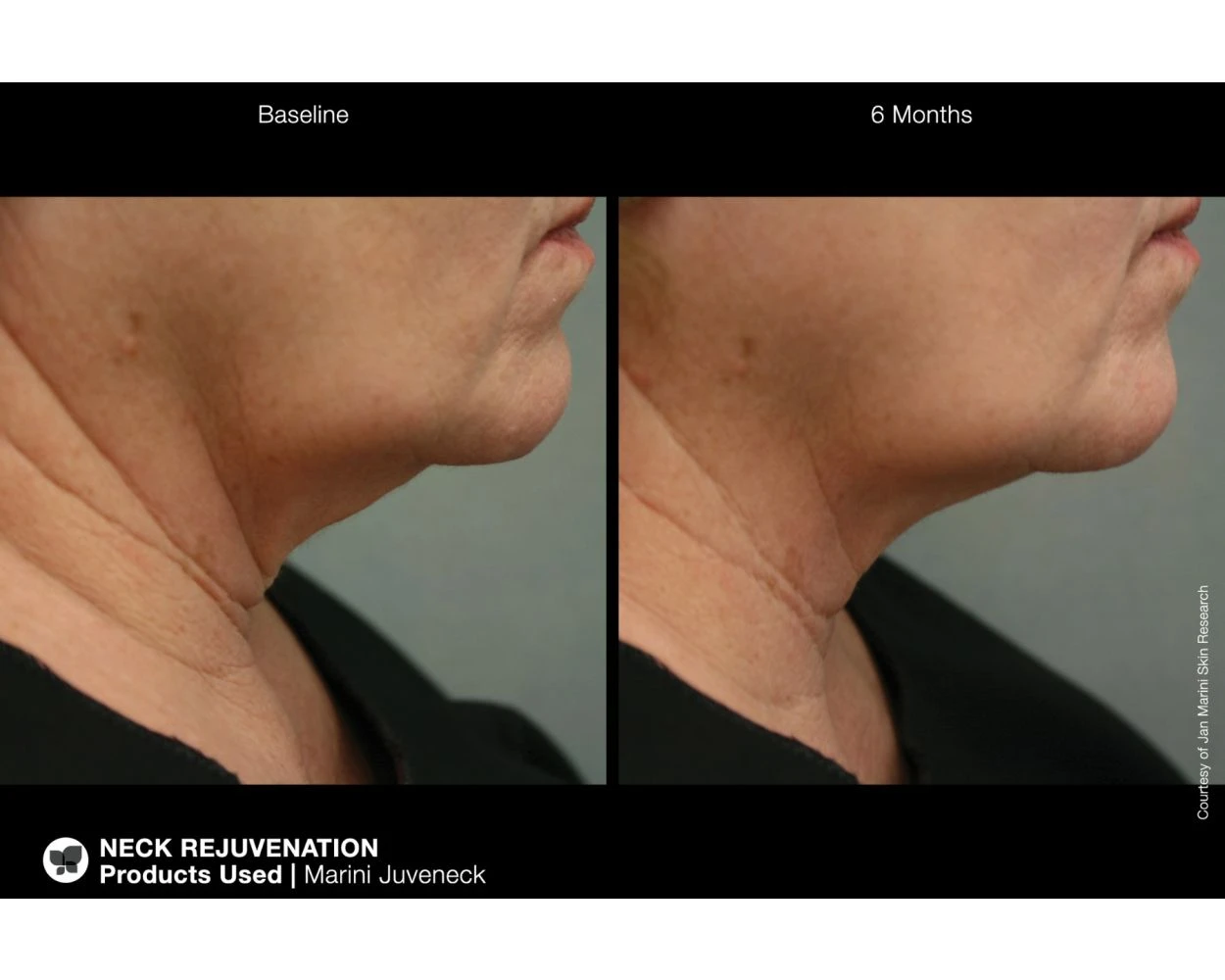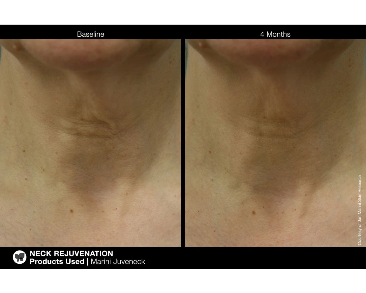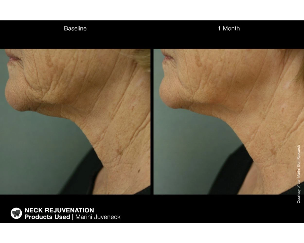 The delicate neck area is highly susceptible to horizontal creases and deep wrinkles, which can age the look of the neck. Marini Juveneck is a revolutionary new product developed specifically for delicate neck area. Shown to reduce the appearance of uneven texture, fine lines and wrinkles, and discoloration on the neck.