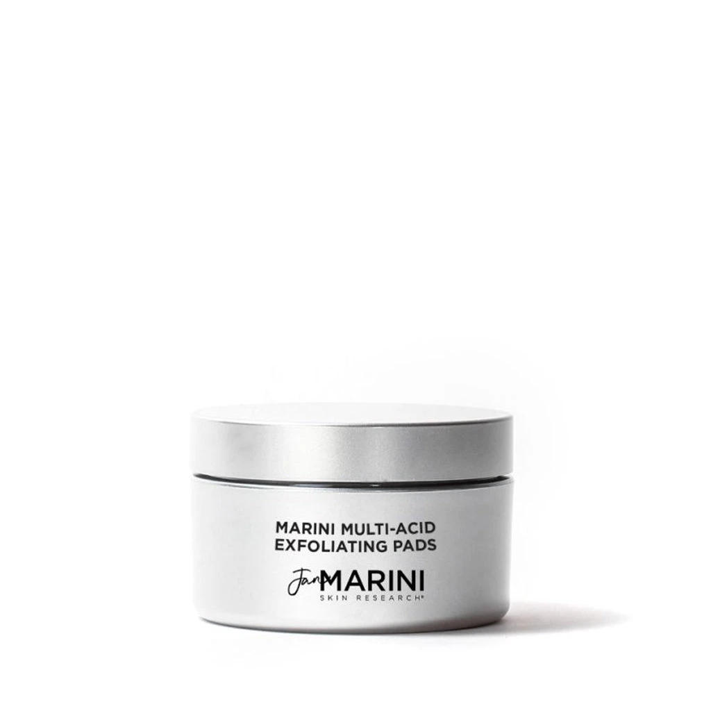 Take your service and home care results to the next level! This dynamic quadruple-acid at-home peel combines 4 unique and powerful acids to immediately resurface the skin for smoother, more luminous / glowing skin, more refined surface texture and reduced appearance of pores, fine lines and wrinkles. As a secondary benefit, these at-home salicylic and glycolic acid pads are also excellent at assisting to clear acne and acne discoloration. Combined with soothing and calming ingredients, the Marini Multi-Acid Resurfacing Pads gives immediately brighter, smoother, glowing skin!