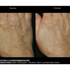 Patent-pending formulation takes a multi-dimensional approach to targeting visible signs of aging on the hands. Improving the visible signs of aging on the hands (including texture, wrinkles and discoloration) requires a multi-dimensional approach. Patented Marini ReNu does this through a combination of retinol, alpha arbutin, azelaic acid, licorice root extract, vitamin C, Vitamin E and more. Marini ReNu is the only hand product shown to deliver significant improvement in a peer-reviewed medical journal (the Journal of Drugs & Dermatology) where physician assessment showed significant improvement in the appearance of texture, discoloration and fine lines and wrinkles. Marini ReNu Corrective Hand Complex is an exciting new patent-pending, multi-functional non-hydroquinone hand cream shown to brighten overall skin tone and decrease the appearance of wrinkles, uneven texture, and discoloration on the hands!