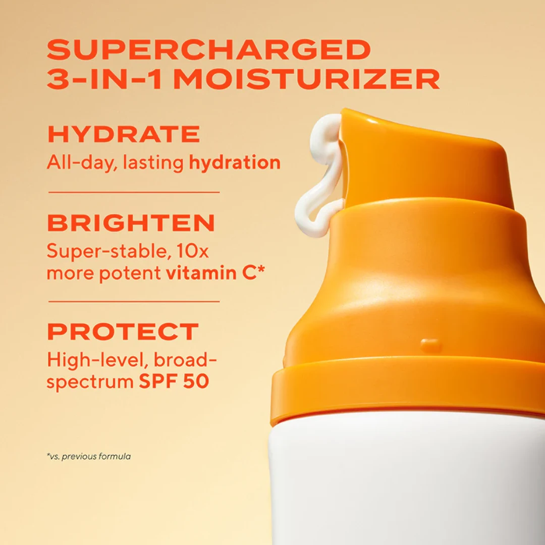 This 3-in-1 multitasking moisturizer delivers all-day, glowy hydration supercharged with 10x more vitamin C* plus high SPF 50 sun protection to visibly brighten after 1 use