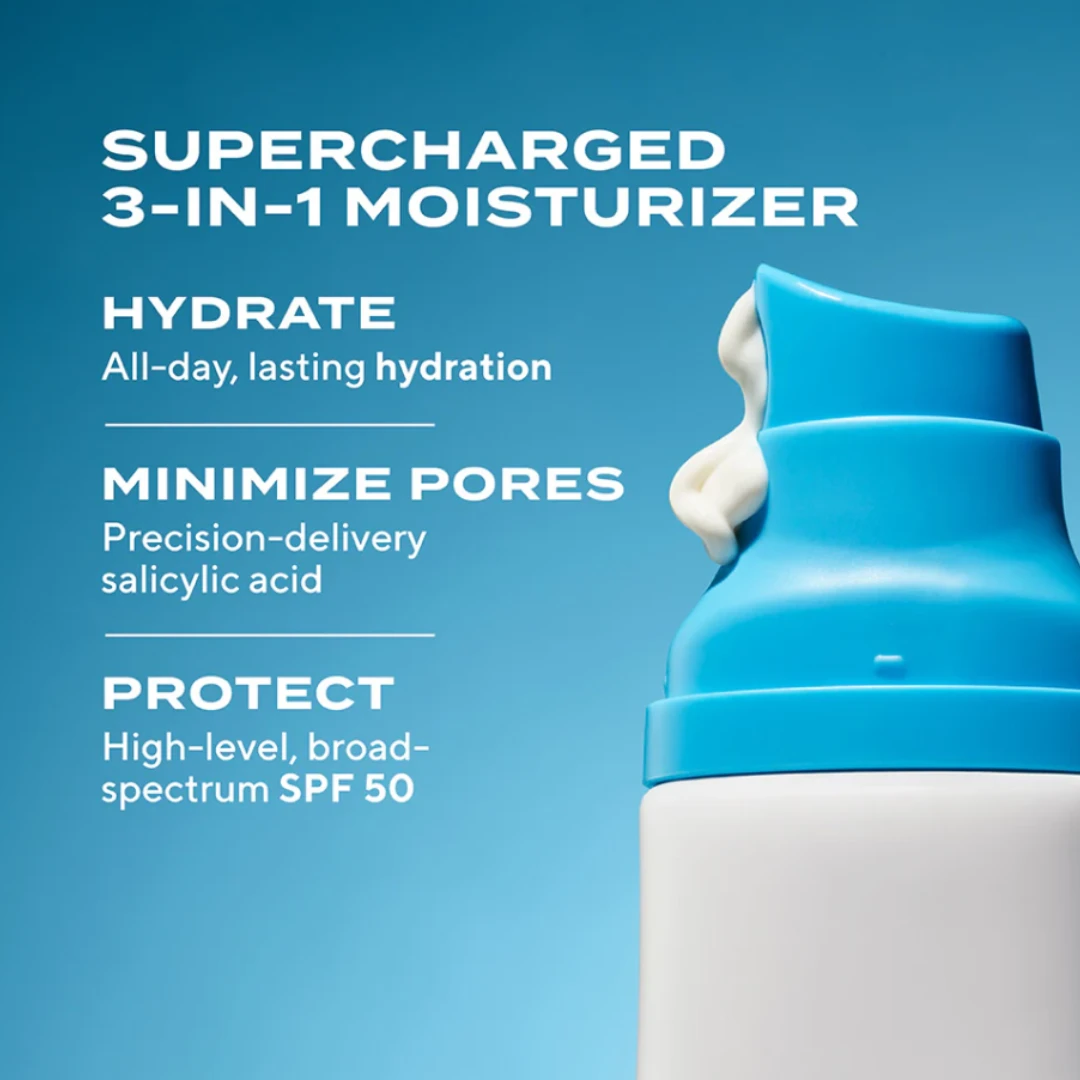 Our most-loved formula, reimagined. This 3-in-1 multitasking moisturizer delivers all-day, shine-free hydration supercharged with precision-delivery salicylic acid to smooth texture + minimize the look of pores, plus high SPF 50 sun protection in 1 step