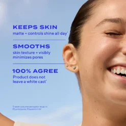 - Lightweight, non-comedogenic formula with a mattifying finish