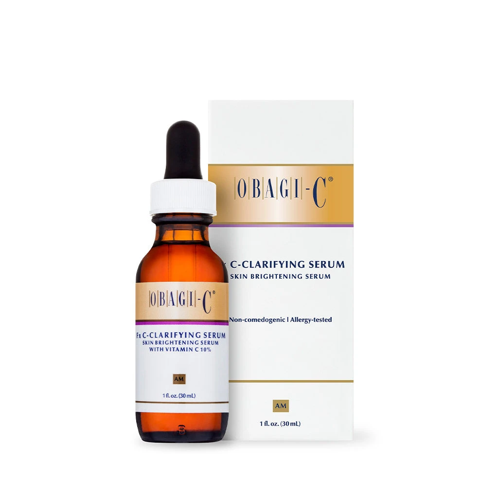 Skin lighteners can sometimes be harsh on dry, sensitive skin types, but with Obagi C-Fx C-Clarifying Serum worry of harsh side effects are non-existent. The Serum uses a natural alternative to chemical skin lighteners that are sometimes not tolerable for certain skin types. Formulated with 4% Arbutin, a derivative of Bearberry, the ingredient works to inhibit key enzyme Tyrosinase that aids in the synthesis of melanin on the skin. By inhibiting this enzyme, the Serum will eliminate discoloration, age spots, sunspots, dark spots and hyperpigmentation. The serum also contains 10% L-Ascorbic Acid (Vitamin C) for added antioxidant protection against harmful free radicals that can cause early signs of aging such as fine lines and wrinkles.  Vitamin C will not only prevent premature aging, but also leave the skin with a healthy, vibrant glow for an overall youthful appearance.