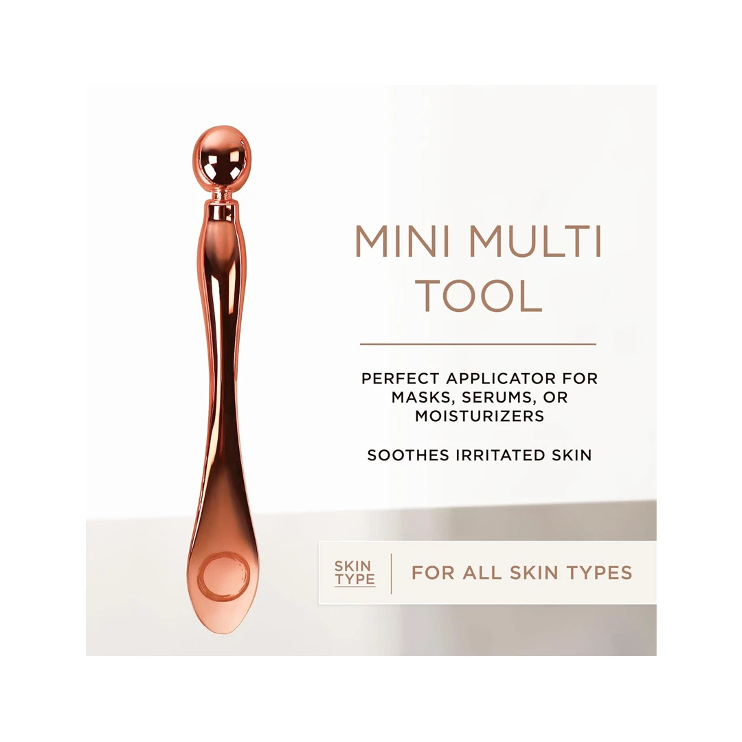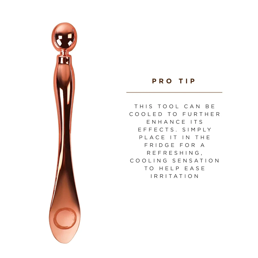 This compact double-sided copper wand features a flat handle for easy stirring and scooping, ensuring thorough mixing of your favorite creams and masks. Its rounded end doubles as a gentle massager, reducing puffiness and dark circles, and can be used to target pressure points for relief and relaxation.