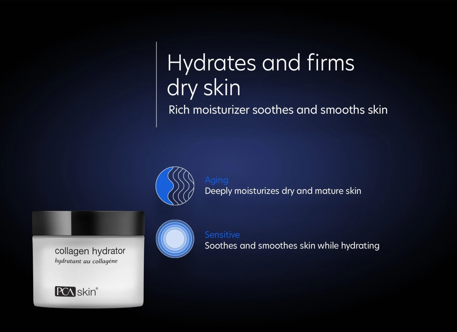 The PCA Skin Collagen Hydrator is a rich moisturizer that hydrates and firms dry, mature skin. Multiple rich moisturizing ingredients work to hydrate, soothe, and smooth the skin as well as firm for a brighter, more youthful appearance. Ingredients include Shea Butter, which works to soften the skin and maintain moisture without heavy, greasy feel, Olive Fruit Oil, which is a rich source of powerful antioxidants to protect the skin from harmful free radicals that lead to signs of premature aging from forming on the skin, and Sweet Almond Fruit Extract, which adds a smoothing film to the skin that firms while infusing nutritive benefits. For a quick and easy dual aging and moisturizing treatment, incorporate PCA Skin Collagen Hydrator into your daily skin care regimen.