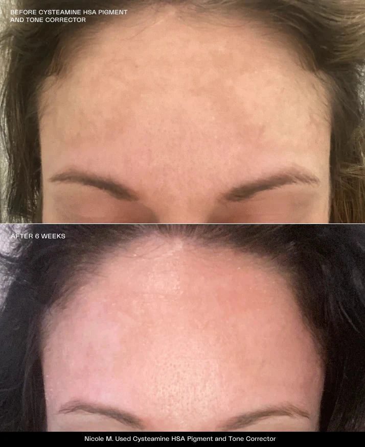 Hyperpigmentation mask with HSA and Cysteamine for more even-looking skin and improved appearance of dark spots.