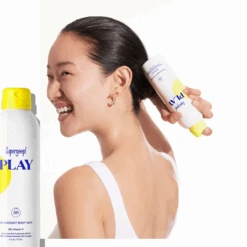 A weightless, non-aerosol sunscreen body spray that is water & sweat-resistant & leaves skin radiantly glowing.