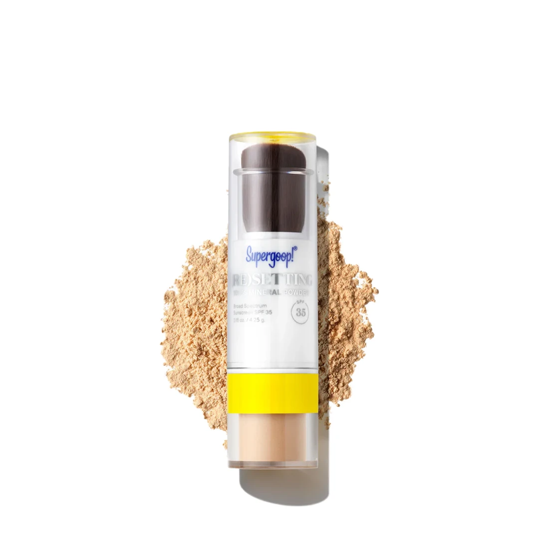 If you’ve ever wondered, “How do I reapply SPF over my makeup?”, (Re)setting Powder is the answer. With a built-in brush, mineral sunscreen actives and mattifying ingredients to control shine, this on-the-go essential was created to make it easy to retouch your look and reapply SPF anytime, anywhere. Use it at home to set your makeup, then toss it in your bag to use throughout the day.