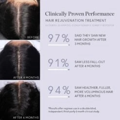 * Results reported after 6 months of using Flourish Shampoo, Conditioner and Density Booster regimen use in a double-blind, third-party clinical study of 35 women.