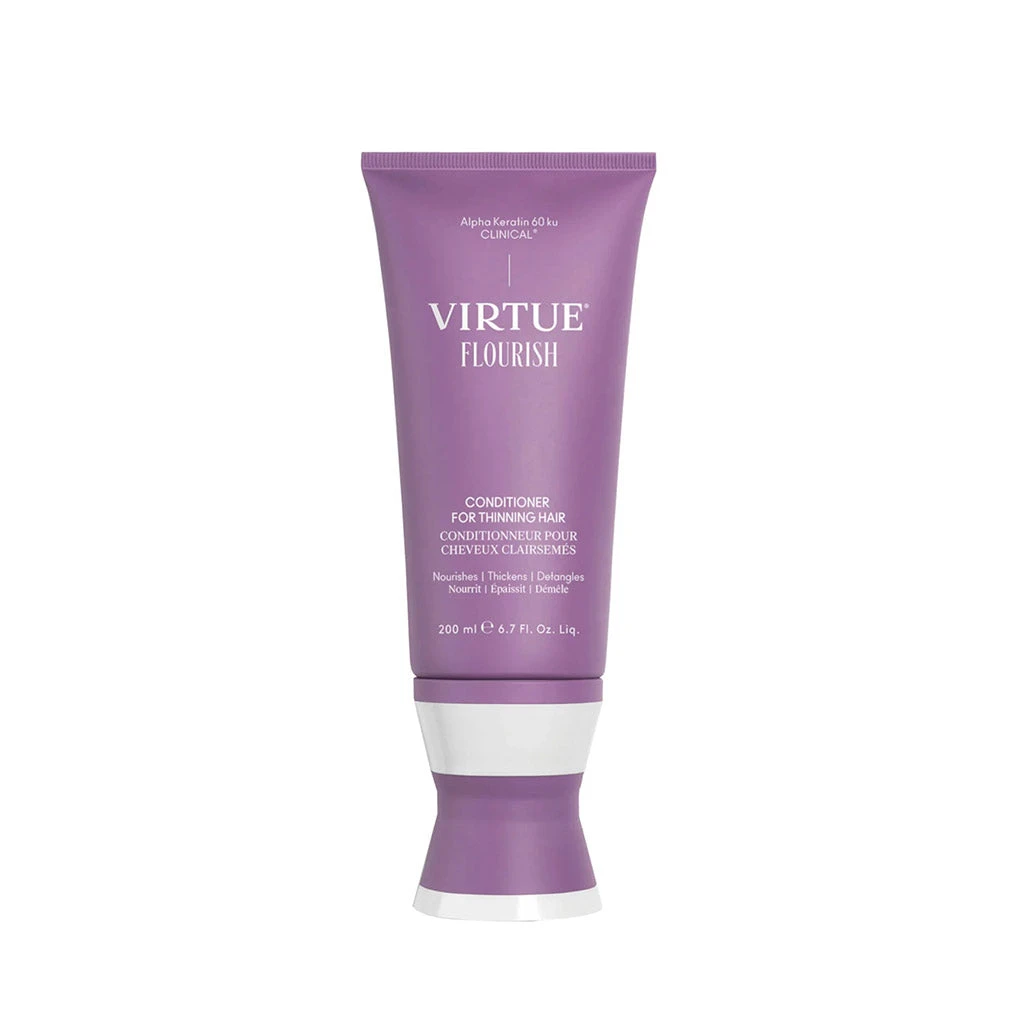 Flourish Conditioner for Thinning Hair is a hair strengthener, hydrator, and detangler all in one. Specifically developed for fine, fragile strands, it nourishes and thickens each hair without weighing it down. This lightweight, sulfate-free conditioner is formulated with our patented Alpha + Gamma Keratins, a highly active Green Tea and Probiotics to leave hair smooth, silky, comb-able and less prone to pulling or breakage. Color-safe, paraben-free, vegan and gluten-free.