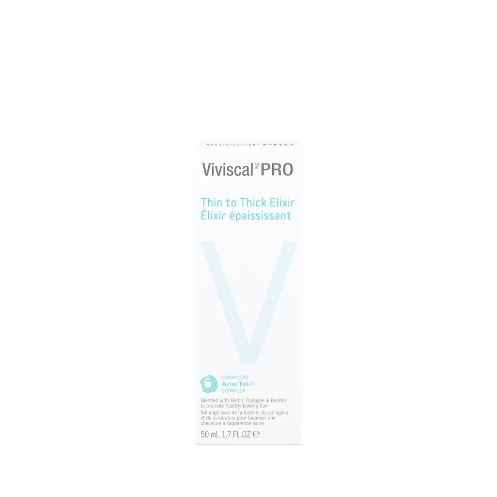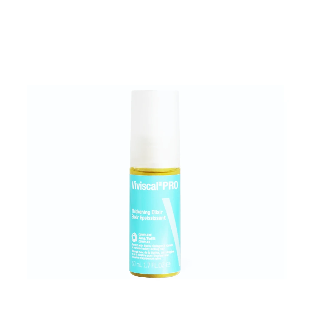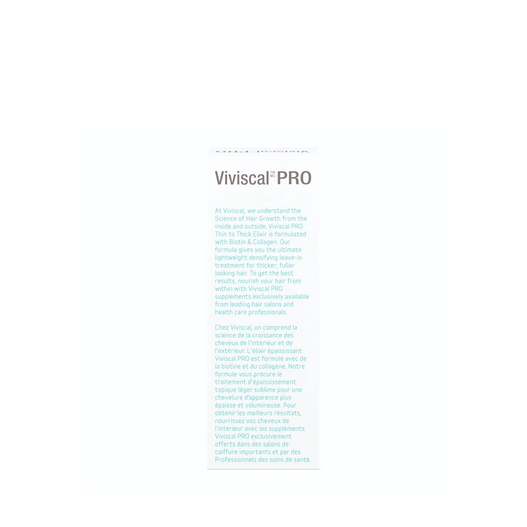 Viviscal Professional Thin to Thick Elixir is the ultimate lightweight, densifying leave-in hair care treatment that encourages thicker, fuller hair. This nourishing serum features Ana-Tel, a proprietary complex comprised of pea sprouts and grape seeds that helps to promote thicker hair. Biotin, collagen and keratin nourish and balance the scalp. The non-greasy, easy-to-apply treatment is suitable for all hair types and free of sulfates, parabens and artificial colors. Thicking Elixir is recommended for use alongside Thickening Shampoo, Thickening Conditioner, Volumizing Fibers and Viviscal Professional Supplements.